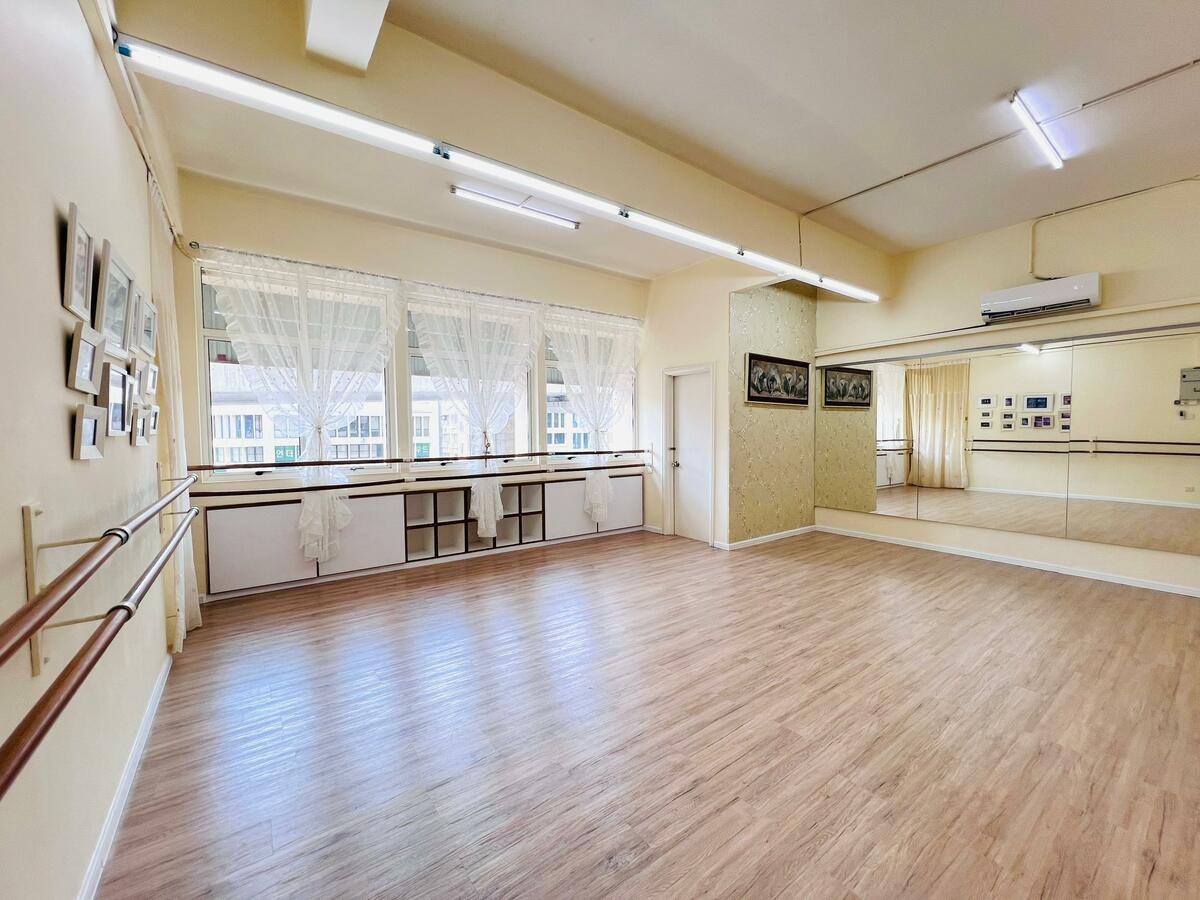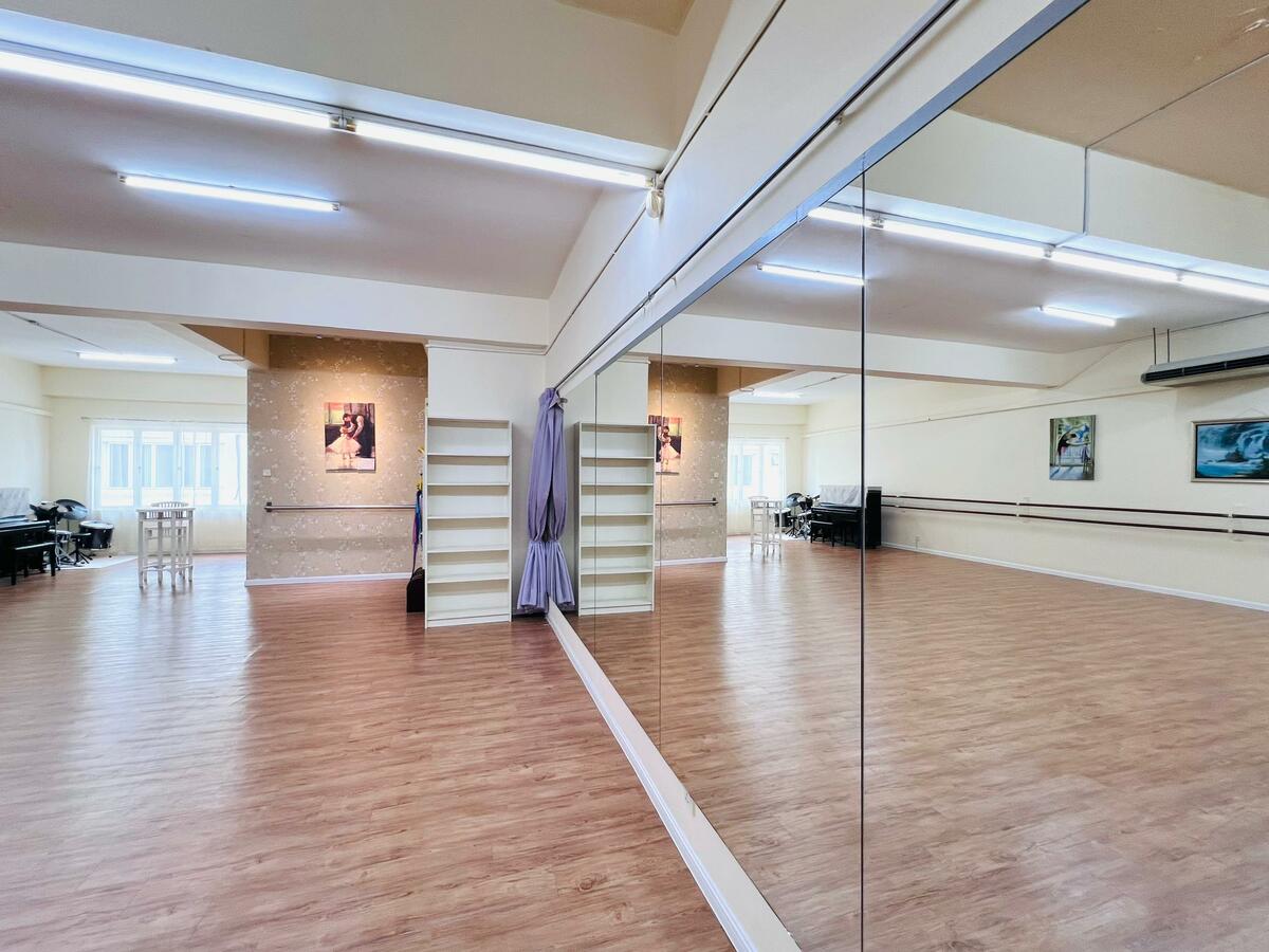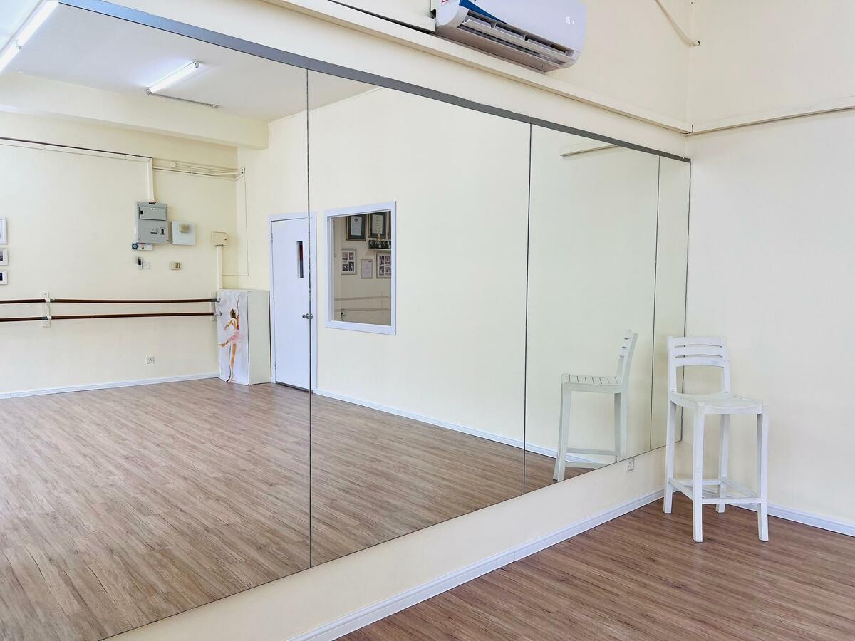 Both the studios are furnished with wooden sprung-floor, ballet barres, mirrors on one side wall, over viewing windows and a complete sound system.